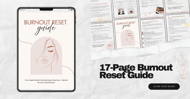 It’s a naturopath-designed roadmap that helps you restore energy, calm your nervous system, and rebuild balance — naturally. You’ll discover the daily rhythm, nutrition, and self-care structure I use with clients to help them go from “burnt out” to brilliantly balanced.